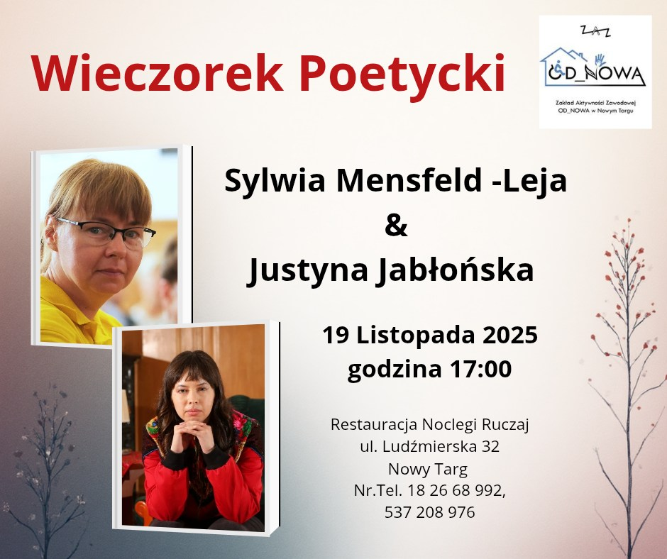 #Poezja#NowyTarg#WieczorekPoetycki#SpotkanieAutorskie#OD_NOWA#SylwiaMensfeldLeja#JustynaJabłońska